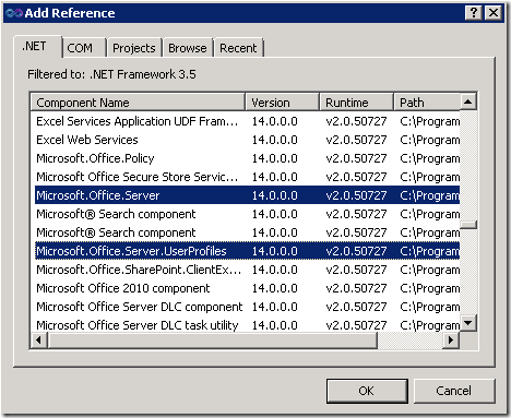 那麼,假設我們想要設計一些維護介面,或是客製化應用程式去存取User Profile Service Application的話,該怎麼做了? 以下步驟說明開發方式: